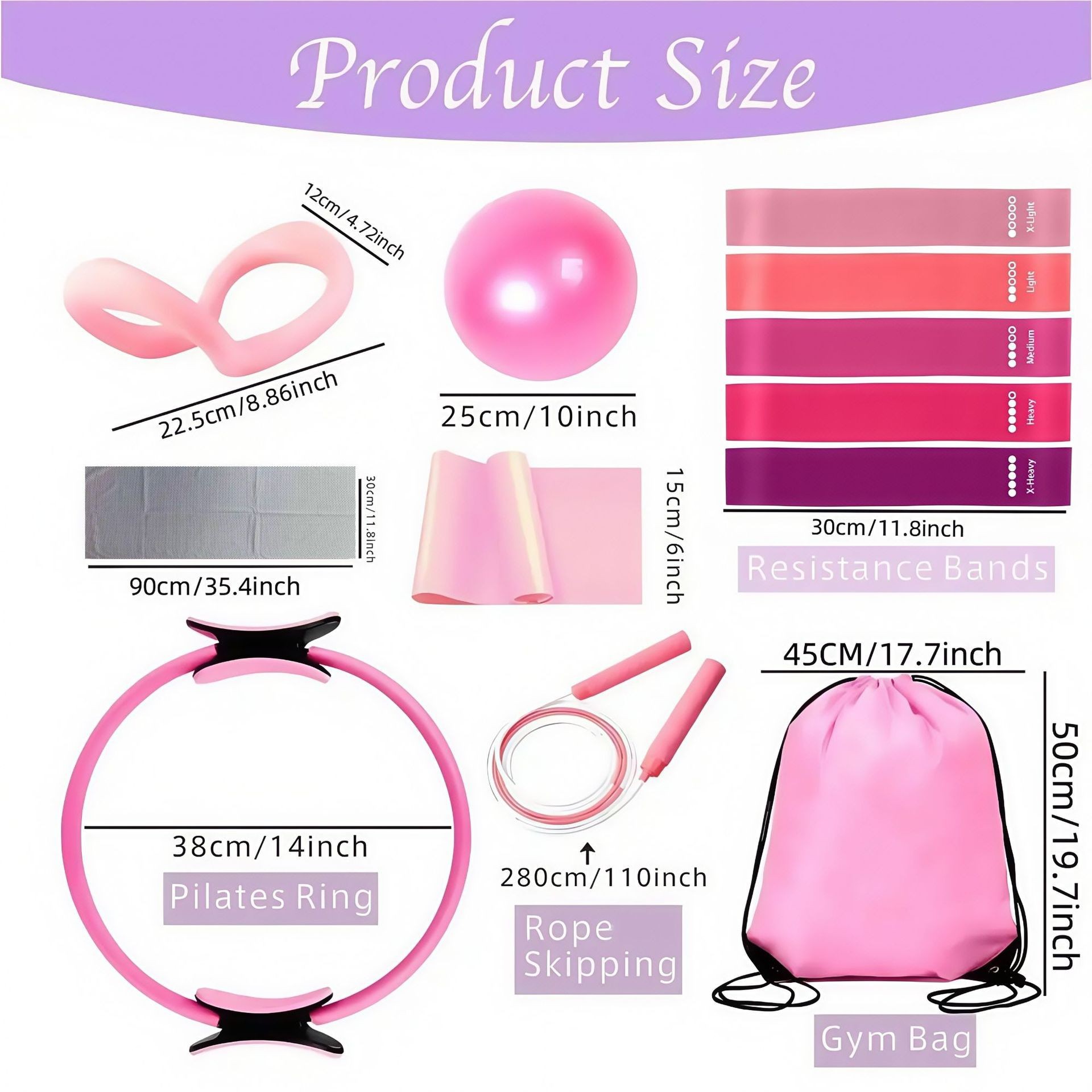 Product Dimensions (Yoga Ball): 55cm diameter (standard size)